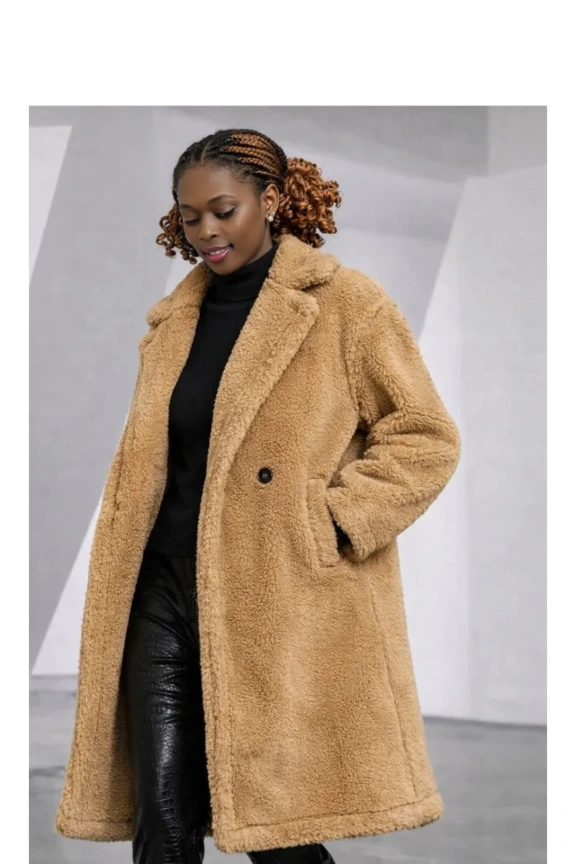 Camel Teddy Coat keeps you cozy and stylish for chilly days and casual outings.